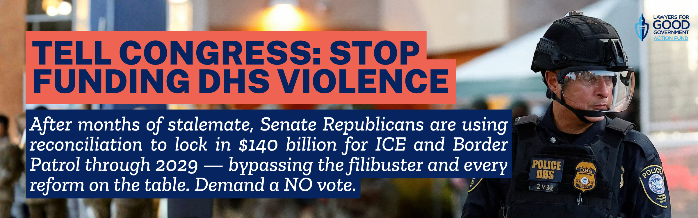 The pressure from lawyers, advocates, and more than 1,000 organizations forced Congress into a months-long stalemate over DHS funding. Senate Republicans are now trying to route around that accountability through reconciliation — a fast-track process designed to bypass the filibuster and the reforms we've been demanding since January. Your voice matters in this moment.